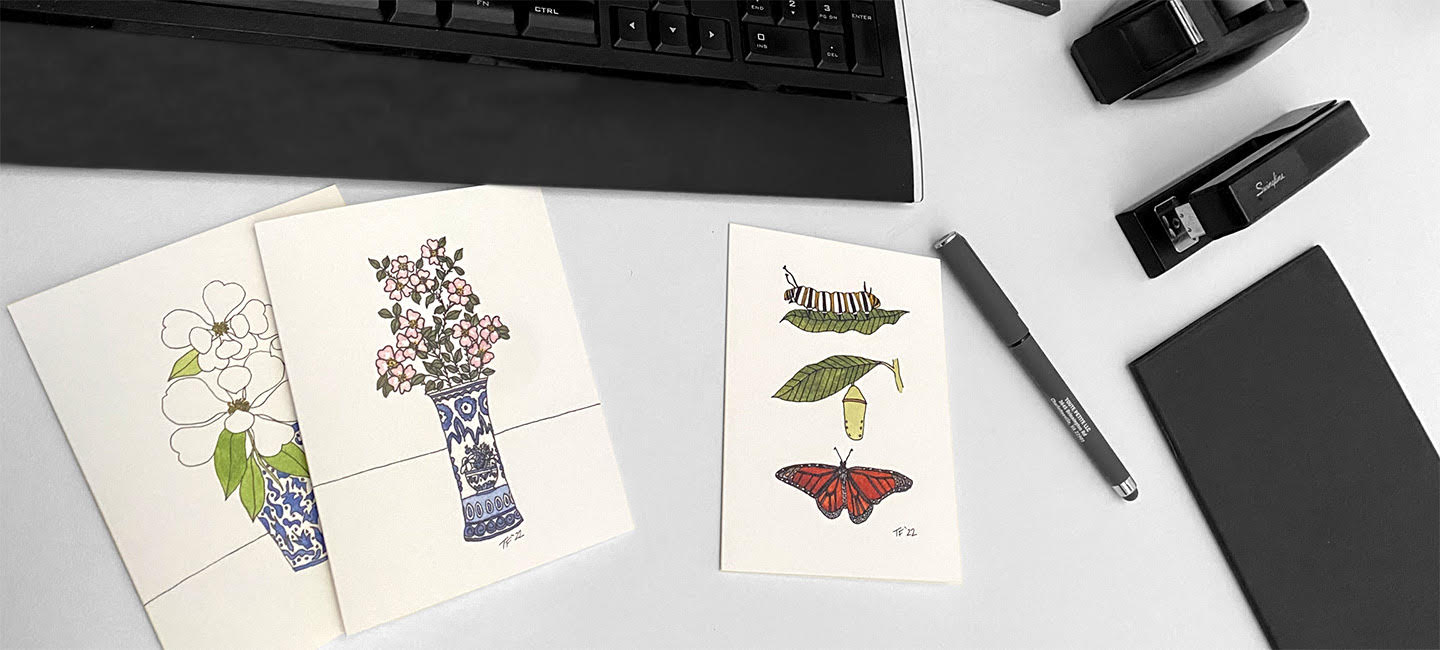 Toute-Petite is a company focused on producing beautiful products based on my original art. Toute-Petite is my childhood nickname and in French implies attention to detail. It's a good descriptor of the finely detailed artwork showcased on all our products.